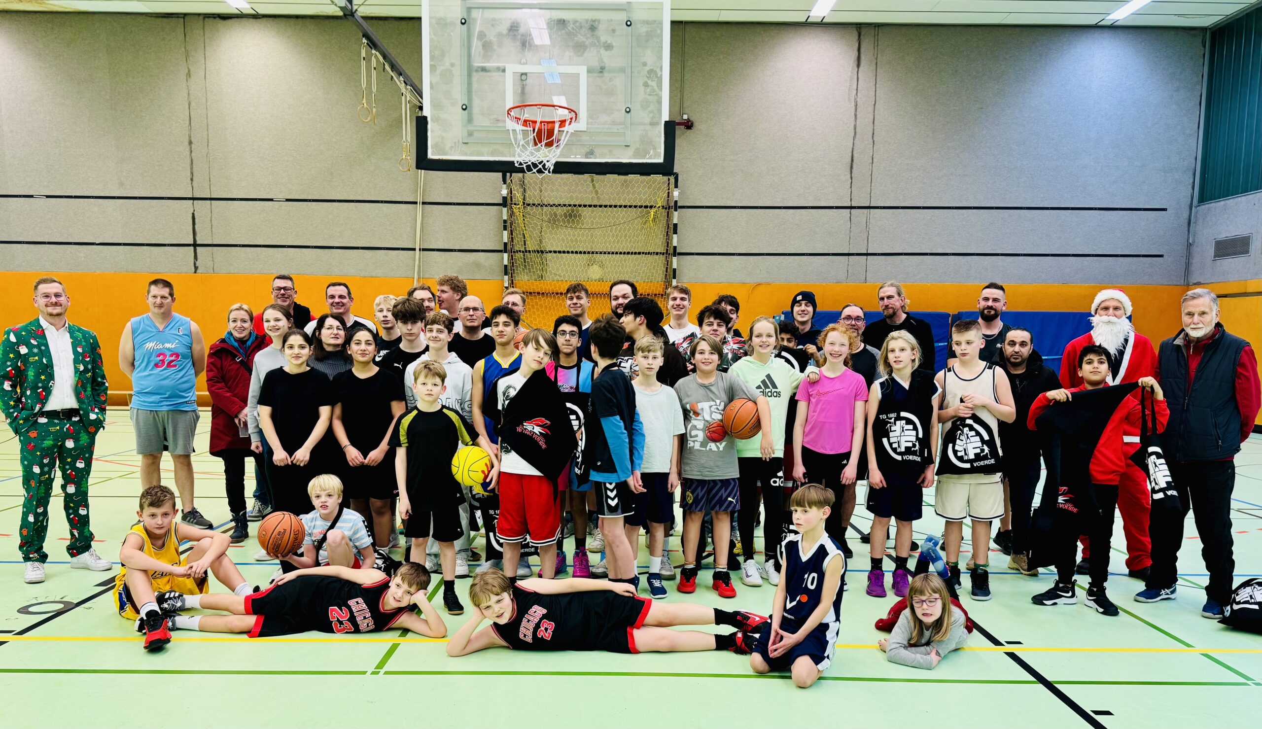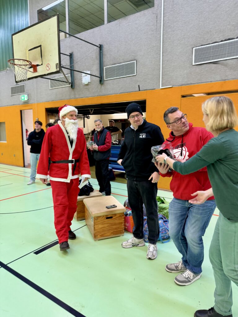 Das Weihnachtsturnier 2025 geriet auch dieses Jahr wieder zu einem kleinen Spektakel. Der Weihnachtsmann hatte, nachdem er die Unstimmigkeiten mit seinem Rentier Rudolph geklärt hatte, schwarze Handtücher mit dem aufgestickten Abteilungslogo dabei. Vom Hauptverein gab es noch Taschen, so dass keiner mehr sagen kann, er oder sie wüsste nicht, wohin er oder sie sportlich gehört! Zur Basketballabteilung der TG Voerde!